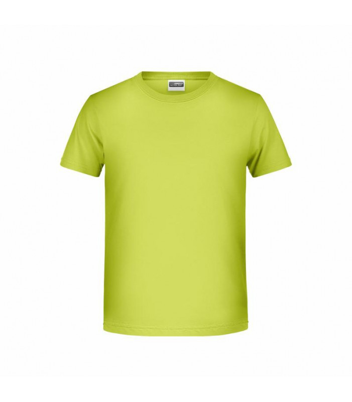 t shirt classica per ragazzo. 100% cotone organico single jersey, collo rotondo, polsini con elastane, tichetta removibile