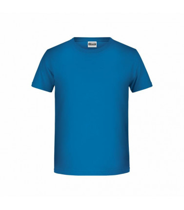 t shirt classica per ragazzo. 100% cotone organico single jersey, collo rotondo, polsini con elastane, tichetta removibile
