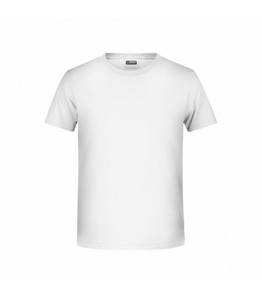 t shirt classica per ragazzo. 100% cotone organico single jersey, collo rotondo, polsini con elastane, tichetta removibile