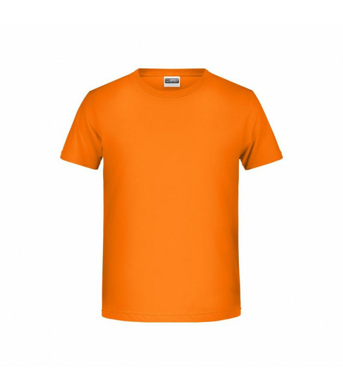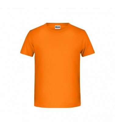 t shirt classica per ragazzo. 100% cotone organico single jersey, collo rotondo, polsini con elastane, tichetta removibile
