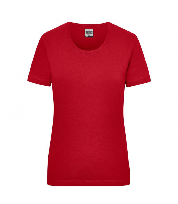 t-shirt classica resistente single-jersey di alta qualitã pretrattato, mantiene la forma. taglio ottimale per ampi movimenti, cucitura doppia per alta tenuta, necktape, leggermente sciancrata. bianco lavabile a 95â°c, adatto per asciugabiancheria, colorato lavabile a 60â°c, adatto per asciugabiancheria. tessuto esterno (200 g/mâ²): 100% cotone, manica corta, donna, professionale, collo rotondo