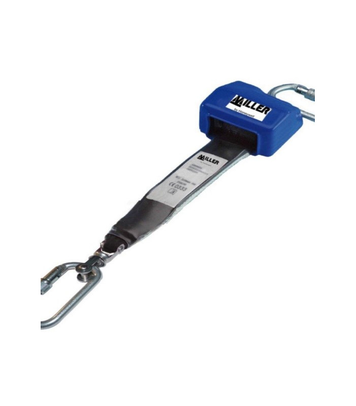 Dispositivo anticaduta retrattile a nastro in poliestere da 48mm e lungo 2,5 m, con 2 moschettoni a vite ml00 in acciaio galvanizzato apertura 18 mm, con assorbitore di energia integrato