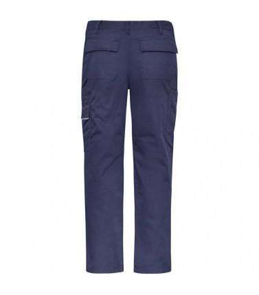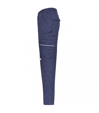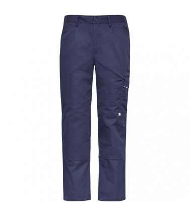 pantaloni da lavoro antipioggia e resistenti allo sporco (600mm colonna d'acqua). vita con inserto laterale elastico, 2 tasche laterali, 2 tasche sul retro, 1 ampia tasca con inserto reflex sulla gamba destra, diverse tasche piccole e fettuccia portautensili, tasche sulle ginocchia per inserire i paraginocchia, 65% poliestere, 35% cotone lungo, professionale
