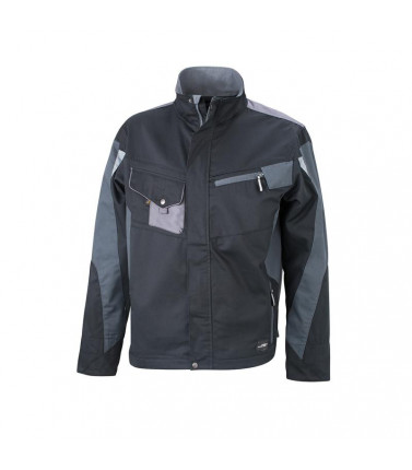 65% poliestere, 35% cotone. giacca da lavoro, colletto rigido, interno in pile, nastro di rinforzo alle spalle in cordura, zip frontale con protezione per il mento, apertura sul retro per la ventilazione, tasche multifunzionali, dettagli catarifrangenti davanti e sul retro.