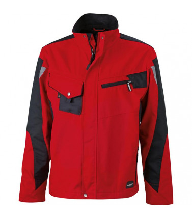 65% poliestere, 35% cotone. giacca da lavoro, colletto rigido, interno in pile, nastro di rinforzo alle spalle in cordura, zip frontale con protezione per il mento, apertura sul retro per la ventilazione, tasche multifunzionali, dettagli catarifrangenti davanti e sul retro.