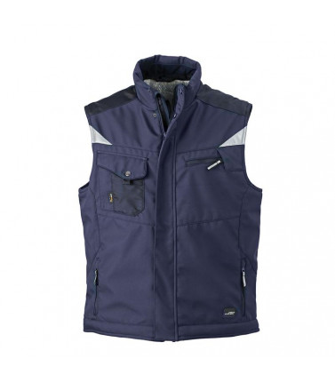 100% poliestere. gilet in softshell con caldo rivestimento interno in pile, tessuto robusto, antivento, traspirante e impermeabile. colletto rigido, rinforzo alle spalle con cordura, tasche multi-funzionali, dettagli catarifrangenti sia davanti che sul retro.