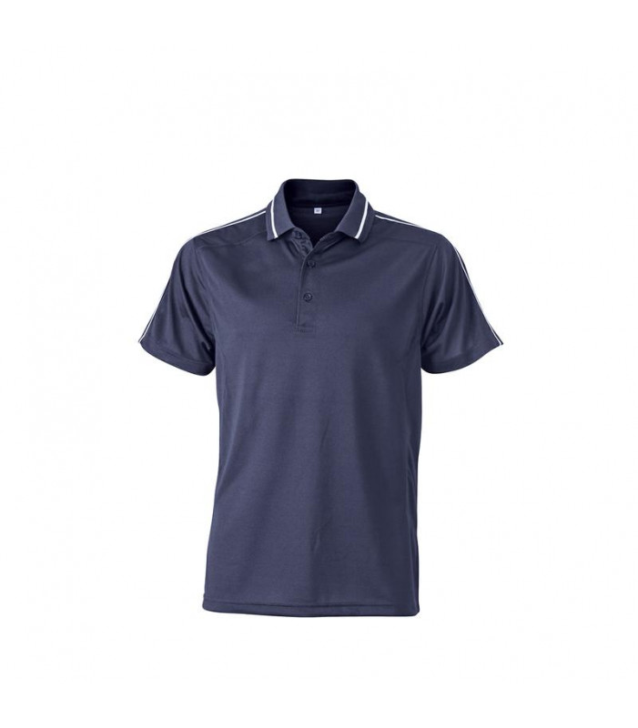 100% poliestere. polo funzionale maniche corte set-in, traspirante, regola l'umidita' e ad asciugatura rapida. tessuto leggero, inserti di colore contrastante, colletto in maglia con righe a contrasto, chiusura a 3 bottoni. struttura con cuciture laterali.