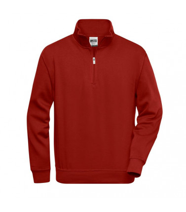 70% cotone pettinato, 30% poliestere, felpa con collo alto e zip, tessuto resistente, elastico a coste lavorato a maglia sui polsini e girovita. lavabile a 60°. gr 290