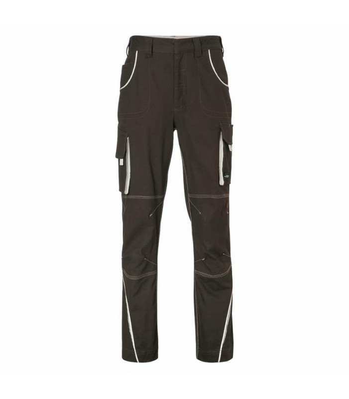 97% cotone, 3% elastan. pantaloni leggeri in canvas, vestibilitã comoda grazie al tessuto in elastan e al taglio ergonomico, triple cuciture, girovita elasticizzato con passanti, varie tasche per attrezzi, elementi catarifrangenti sia sul davanti che sul retro. lavabile a 60â°c, adatti per asciugatrice, tutti i bottoni e le cerniere sono nascosti.