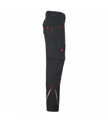 97% cotone, 3% elastan. pantaloni leggeri in canvas, vestibilitã comoda grazie al tessuto in elastan e al taglio ergonomico, triple cuciture, girovita elasticizzato con passanti, varie tasche per attrezzi, elementi catarifrangenti sia sul davanti che sul retro. lavabile a 60â°c, adatti per asciugatrice, tutti i bottoni e le cerniere sono nascosti.