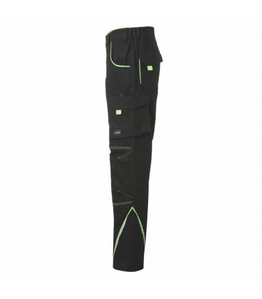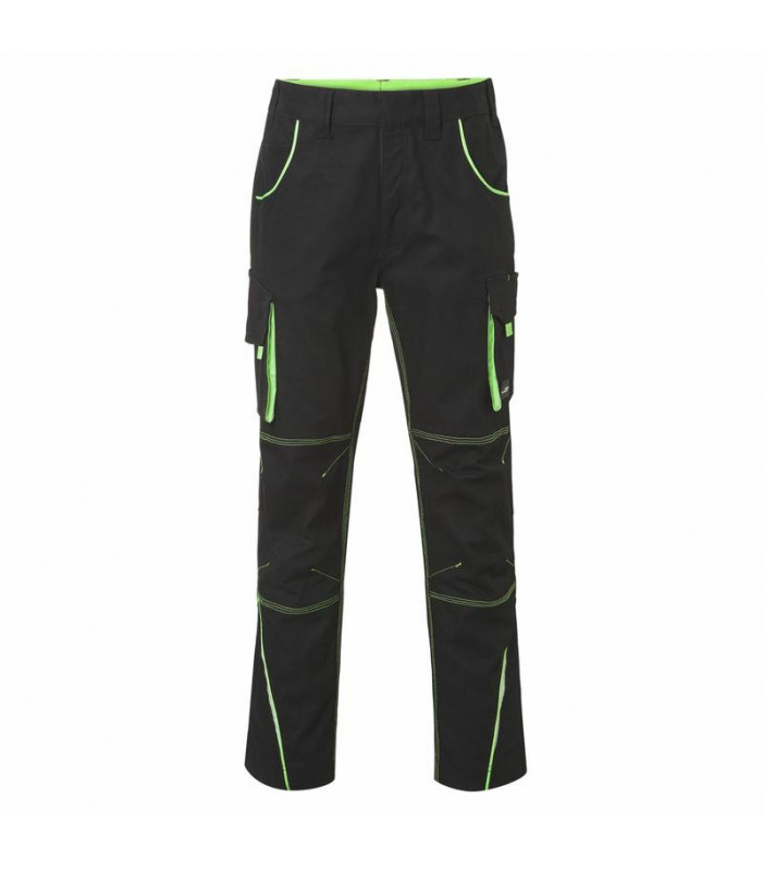 97% cotone, 3% elastan. pantaloni leggeri in canvas, vestibilitã comoda grazie al tessuto in elastan e al taglio ergonomico, triple cuciture, girovita elasticizzato con passanti, varie tasche per attrezzi, elementi catarifrangenti sia sul davanti che sul retro. lavabile a 60â°c, adatti per asciugatrice, tutti i bottoni e le cerniere sono nascosti.
