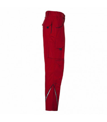 97% cotone, 3% elastan. pantaloni leggeri in canvas, vestibilitã comoda grazie al tessuto in elastan e al taglio ergonomico, triple cuciture, girovita elasticizzato con passanti, varie tasche per attrezzi, elementi catarifrangenti sia sul davanti che sul retro. lavabile a 60â°c, adatti per asciugatrice, tutti i bottoni e le cerniere sono nascosti.