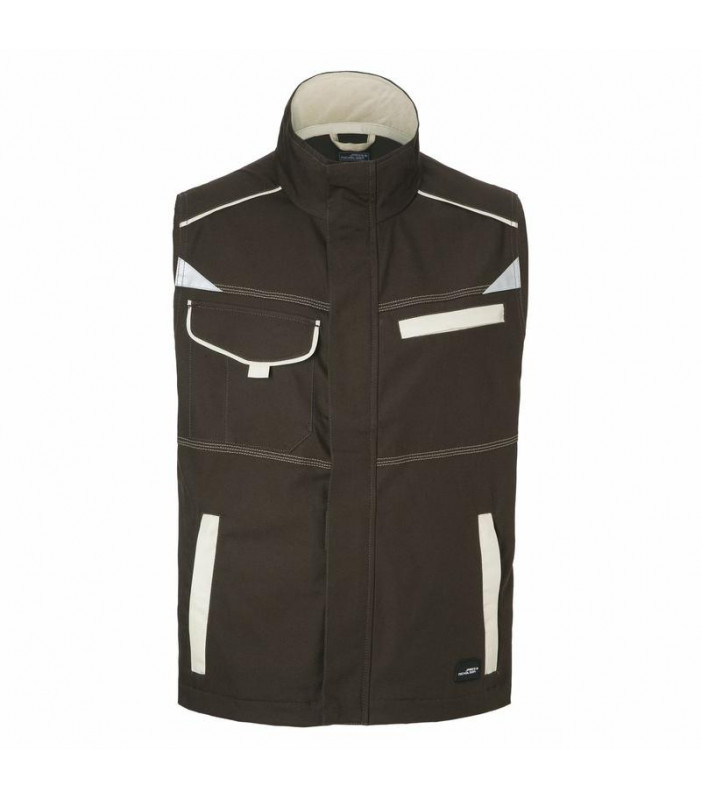 97% cotone, 3% elastan. gilet in elastan, leggero, taglio ergonomico, colletto alto rivestito in soft fleece nella parte interiore, cerniera intera nascosta con appoggio per il mento, tasche laterali con cerniera, tasca esterna nel petto, tasca interna nel petto con chiusura in velcro, tasca interna per il telefono cellulare, dettagli catarifrangenti sia sul davanti che sul retro, lavabile a 60â°c, adatta per asciugatrice, tutti i bottoni e le cerniere sono nascosti.