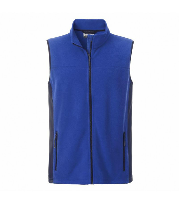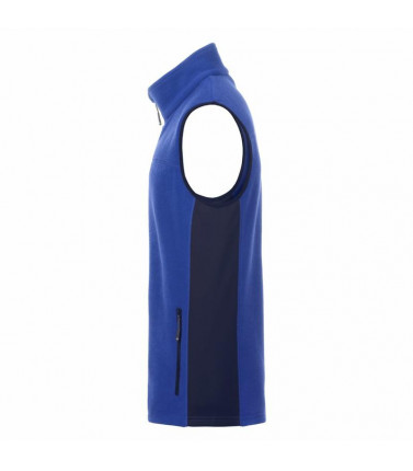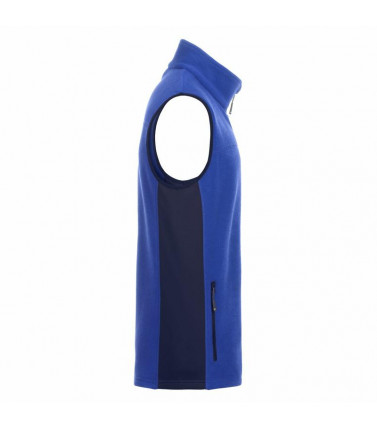 tessuto esterno (280 g/mâ²): 100% poliestere. easy care, anti pilling, in microfleece, inserti elastici laterali in soft shell di colore contrastante, cerniera nascosta e protezione per il mento, colletto alto, due tasche laterali con cerniera.