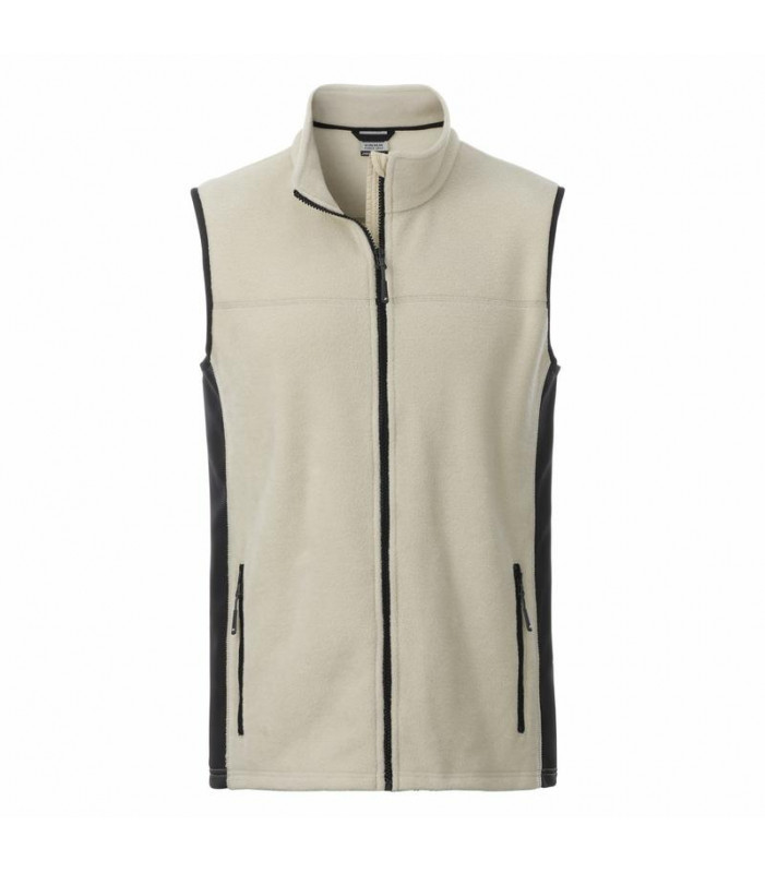 tessuto esterno (280 g/mâ²): 100% poliestere. easy care, anti pilling, in microfleece, inserti elastici laterali in soft shell di colore contrastante, cerniera nascosta e protezione per il mento, colletto alto, due tasche laterali con cerniera.