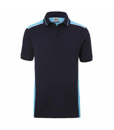 50% cotone, 50% poliestere. polo a maniche corte set-in, perfetto mantenimento della forma e resistenza al lavaggio, polsini e colletto in maglia, inserti contrastanti nei lati e sulle spalle, colletto con strisce contrastanti, lavabile a 60â°c, adatta per asciugatrice, chiusura con 3 bottoni, struttura con pannelli laterali in contrasto.