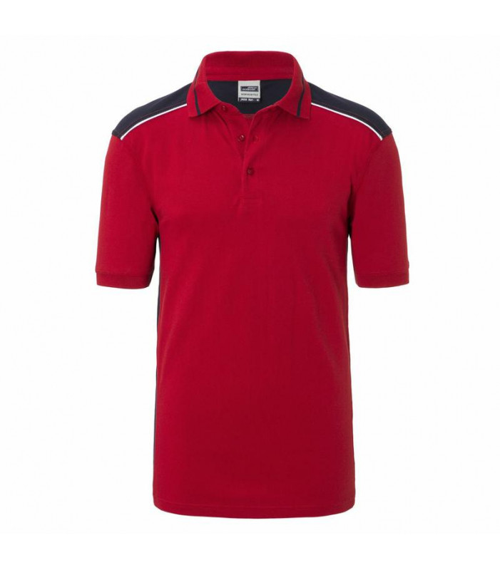 50% cotone, 50% poliestere. polo a maniche corte set-in, perfetto mantenimento della forma e resistenza al lavaggio, polsini e colletto in maglia, inserti contrastanti nei lati e sulle spalle, colletto con strisce contrastanti, lavabile a 60â°c, adatta per asciugatrice, chiusura con 3 bottoni, struttura con pannelli laterali in contrasto.