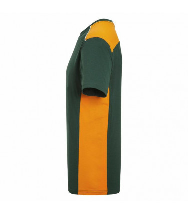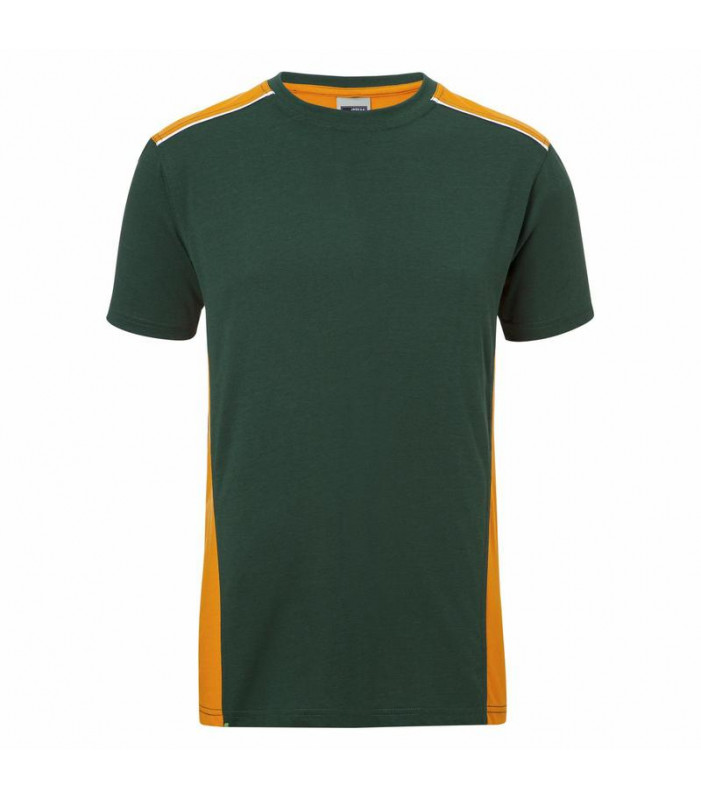 50% cotone, 50% poliestere. t-shirt maniche corte set-in, mantenimento della forma e resistenza al lavaggio, inserti di colore contrastante nei lati e sulle spalle. lavabile a 60â°c, ideale per asciugatrice, struttura con pannelli laterali.