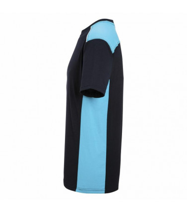 50% cotone, 50% poliestere. t-shirt maniche corte set-in, mantenimento della forma e resistenza al lavaggio, inserti di colore contrastante nei lati e sulle spalle. lavabile a 60â°c, ideale per asciugatrice, struttura con pannelli laterali.