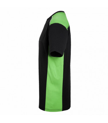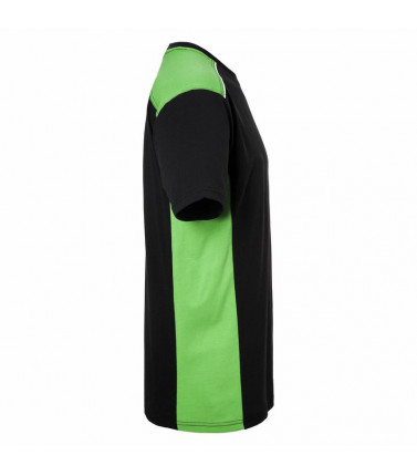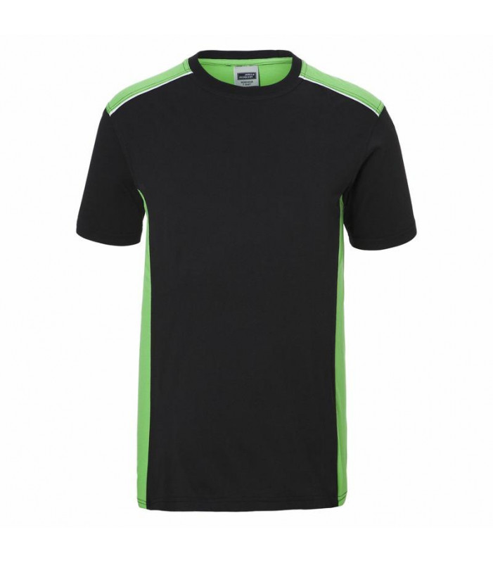 50% cotone, 50% poliestere. t-shirt maniche corte set-in, mantenimento della forma e resistenza al lavaggio, inserti di colore contrastante nei lati e sulle spalle. lavabile a 60â°c, ideale per asciugatrice, struttura con pannelli laterali.