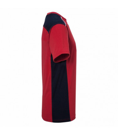 50% cotone, 50% poliestere. t-shirt maniche corte set-in, mantenimento della forma e resistenza al lavaggio, inserti di colore contrastante nei lati e sulle spalle. lavabile a 60â°c, ideale per asciugatrice, struttura con pannelli laterali.