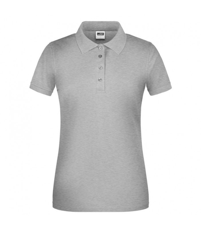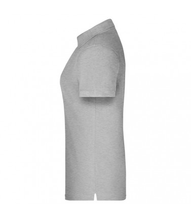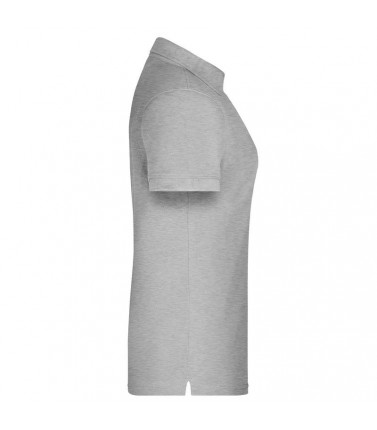 50% cotone organico pettinato ring-spun, 50%poliestere. polo da donna con colletto e polsini in tessuto a maglia, neck tape, abbottonatura con 4 bottoni, spacchi laterali, lavabile fino a 60 gradi.