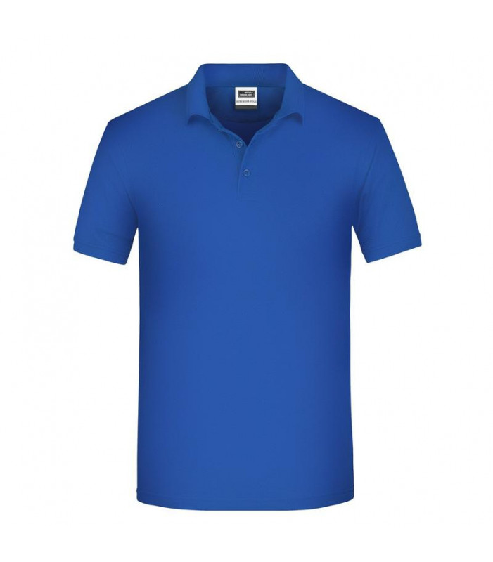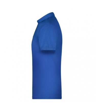 50% cotone organico pettinato ring-spun, 50%poliestere. polo da uomo con colletto e polsini in tessuto a maglia, neck tape, abbottonatura con 4 bottoni, spacchi laterali, lavabile fino a 60 gradi.