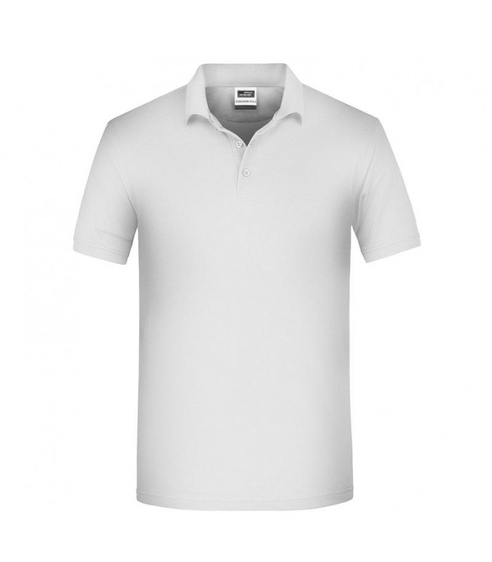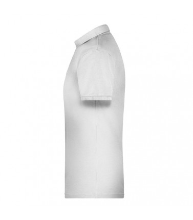 50% cotone organico pettinato ring-spun, 50%poliestere. polo da uomo con colletto e polsini in tessuto a maglia, neck tape, abbottonatura con 4 bottoni, spacchi laterali, lavabile fino a 60 gradi.