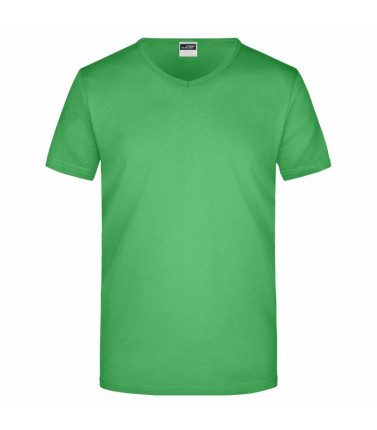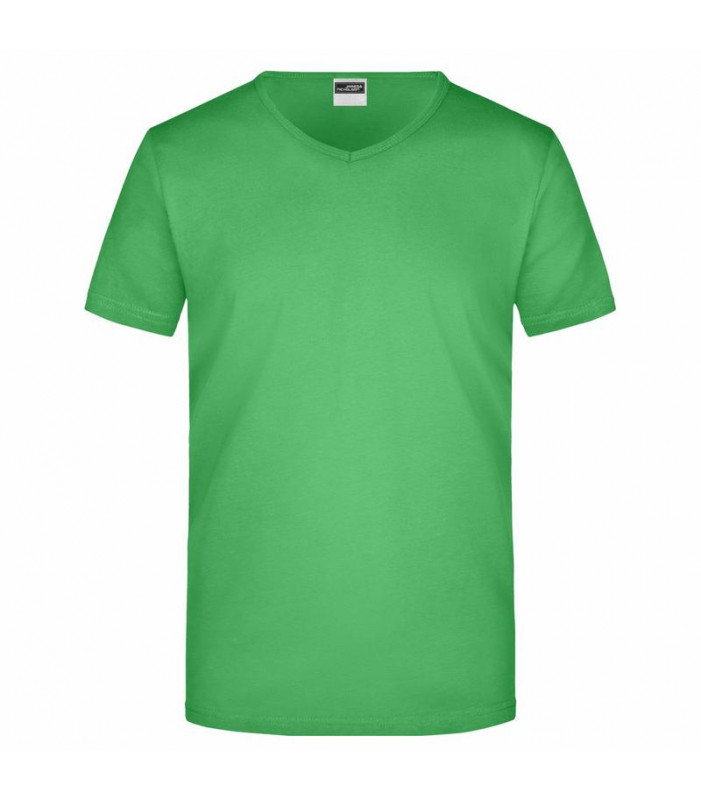t-shirt girocollo attillata single jersey pretrattato che mantiene la forma, taglio attillato con cuciture laterali, sciancrata, profondo scollo a v 1 x . tessuto esterno (160 g/mâ²): 100% cotone, manica corta, slimfit, collo a v