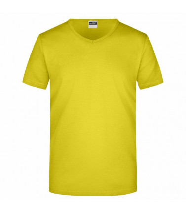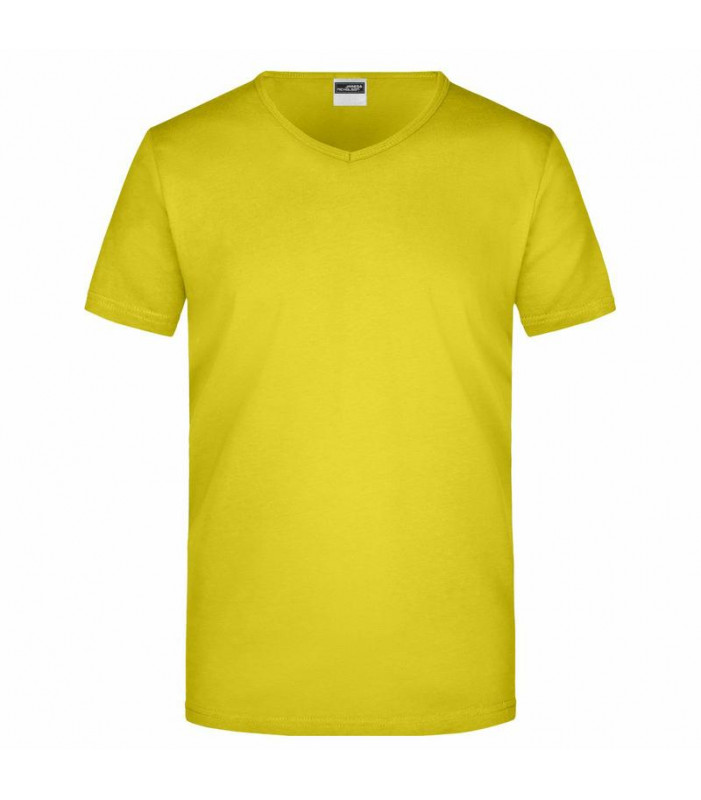 t-shirt girocollo attillata single jersey pretrattato che mantiene la forma, taglio attillato con cuciture laterali, sciancrata, profondo scollo a v 1 x . tessuto esterno (160 g/mâ²): 100% cotone, manica corta, slimfit, collo a v