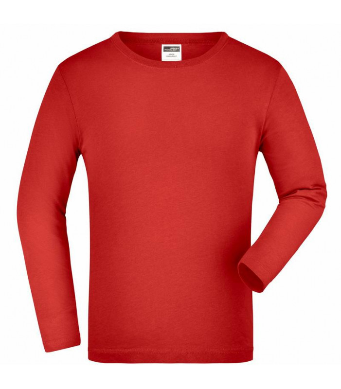 t-shirt manica lunga in single jersey jn913: taglio diritto senza cuciture laterali, 1 x 1 girocollo e necktape a costine, scollo tondo con elastan, cucitura laterale e cuciture a doppio filo sul collo tessuto esterno (150 g/mâ²): 100% cotone, bambini, manica lunga