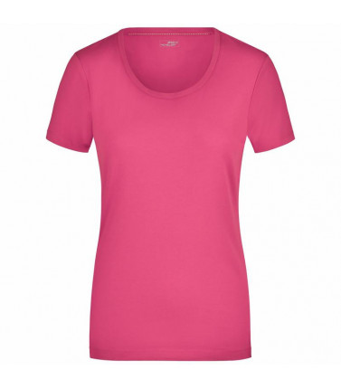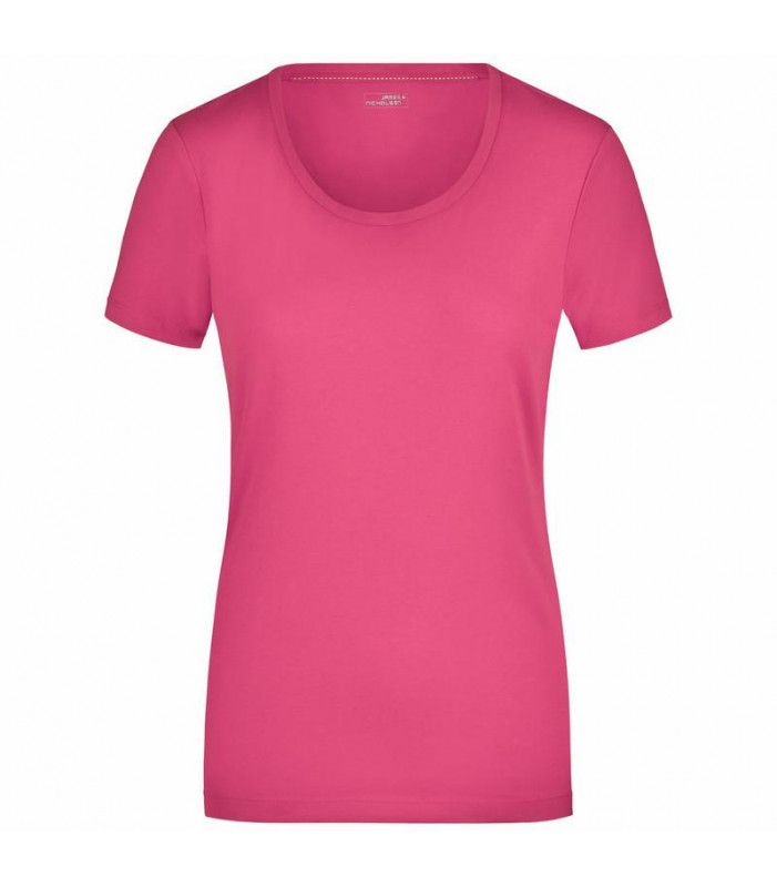 t-shirt elasticizzato da jersey elastico morbido taglio ampio, scollo con bordino stretto. tessuto esterno (170 g/mâ²): 95% cotone, 5% elastan, manica corta, donna, collo rotondo, taglio sciancrato
