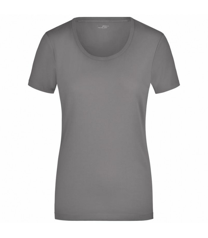t-shirt elasticizzato da jersey elastico morbido taglio ampio, scollo con bordino stretto. tessuto esterno (170 g/mâ²): 95% cotone, 5% elastan, manica corta, donna, collo rotondo, taglio sciancrato
