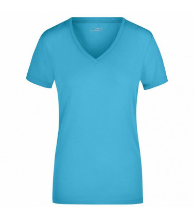 t-shirt elasticizzato da jersey elastico morbido taglio ampio, scollo con bordino stretto tessuto esterno (170 g/mâ²): 95% cotone, 5% elastan, manica corta, donna, taglio sciancrato, collo a v