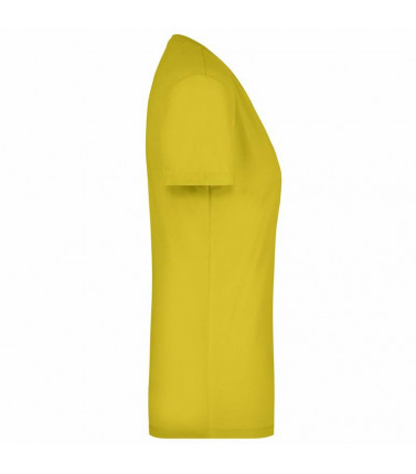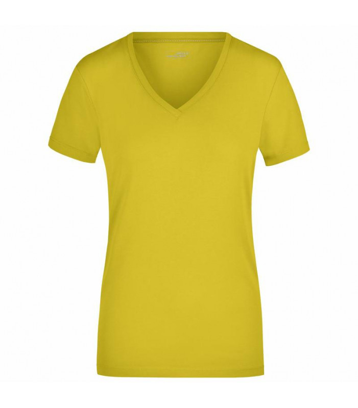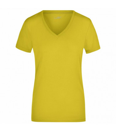t-shirt elasticizzato da jersey elastico morbido taglio ampio, scollo con bordino stretto tessuto esterno (170 g/mâ²): 95% cotone, 5% elastan, manica corta, donna, taglio sciancrato, collo a v