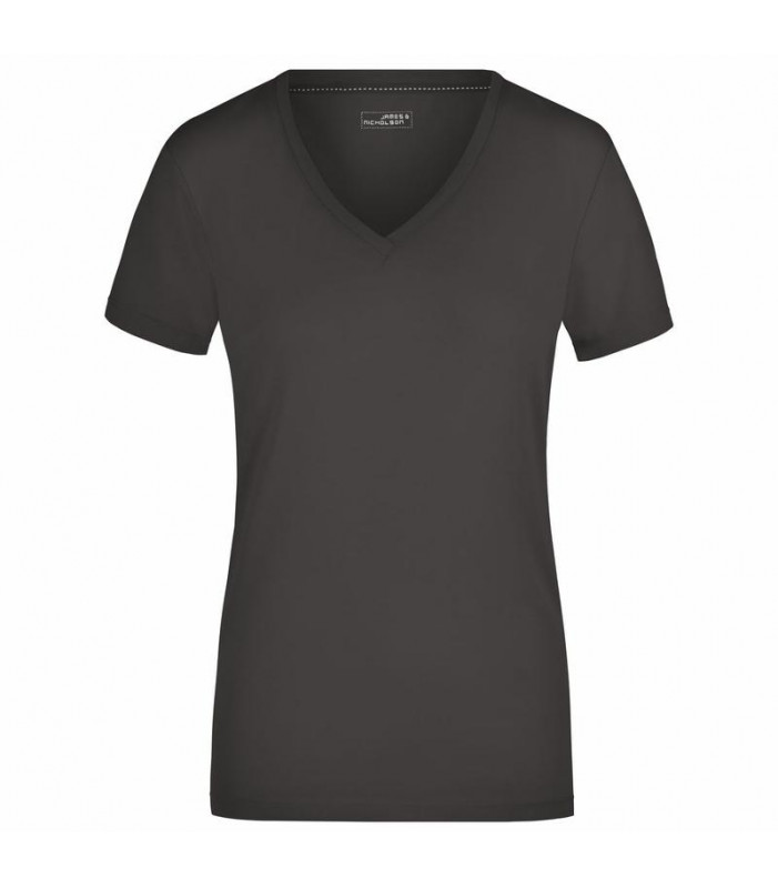 t-shirt elasticizzato da jersey elastico morbido taglio ampio, scollo con bordino stretto tessuto esterno (170 g/mâ²): 95% cotone, 5% elastan, manica corta, donna, taglio sciancrato, collo a v