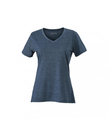 t-shirt alla moda con scollatura a v melange di single jersey di alta qualitã , taglio disinvolto e comodo, collo a v con elastan, forma avvitata. tessuto esterno (170 g/mâ²): 65% poliestere, 35% cotone manica corta, donna
