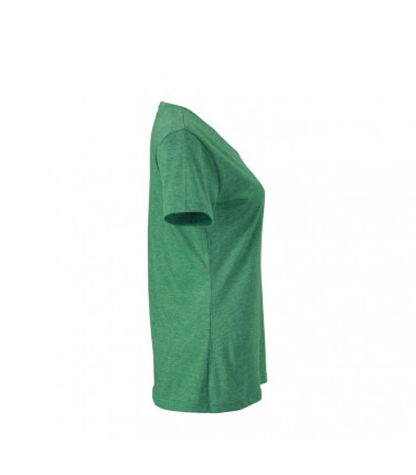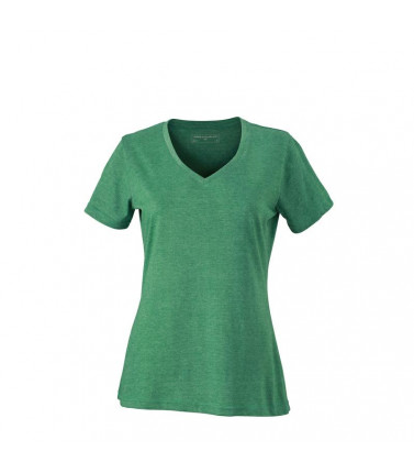t-shirt alla moda con scollatura a v melange di single jersey di alta qualitã , taglio disinvolto e comodo, collo a v con elastan, forma avvitata. tessuto esterno (170 g/mâ²): 65% poliestere, 35% cotone manica corta, donna