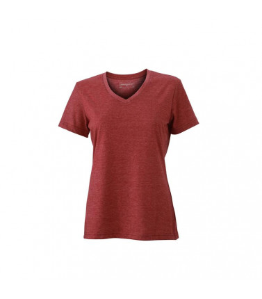t-shirt alla moda con scollatura a v melange di single jersey di alta qualitã , taglio disinvolto e comodo, collo a v con elastan, forma avvitata. tessuto esterno (170 g/mâ²): 65% poliestere, 35% cotone manica corta, donna