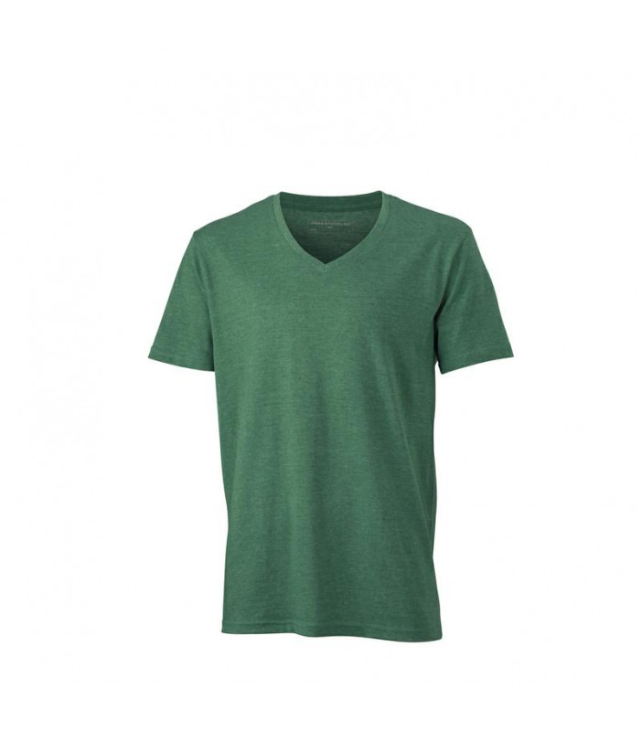 t-shirt alla moda con scollatura a v melange di single jersey di alta qualitã . taglio disinvolto e comodo, collo a v con elastan, tessuto esterno (170 g/mâ²): 65% poliestere, 35% cotone manica corta