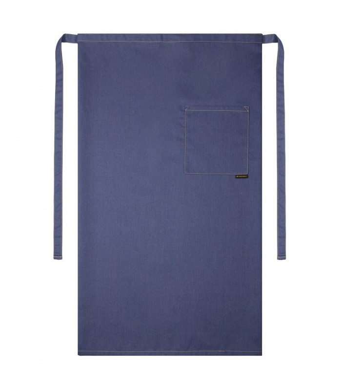 65% poliestere, 35% cotone. grembiule di jeans, doppie cuciture, cuciture contrastanti, tasca (17,5 x 19 cm) sul lato sinistro, adatto al lavaggio industriale.