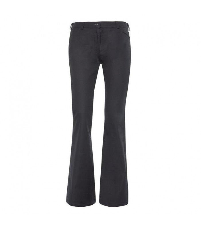 97% cotone, 3% elastolefin. pantaloni da donna in tessuto irrestringibile, lavabile. vestibilita' confortevole con fibra elastica, passanti per cintura, gamba leggermente svasata, due tasche laterali, due tasche posteriori.