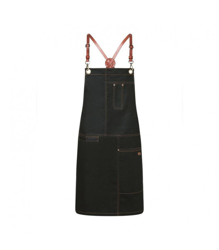 100% cotone. grembiule con tasche. cinturini in pelle sintetica, removibili e regolabili in lunghezza. cinturino in tessuto a destra per attaccare una fondina o un asciugamano da cucina. lavabile fino a 60â° c.