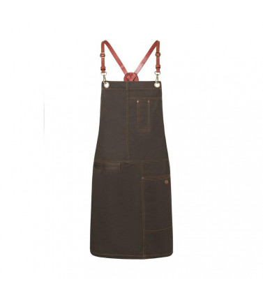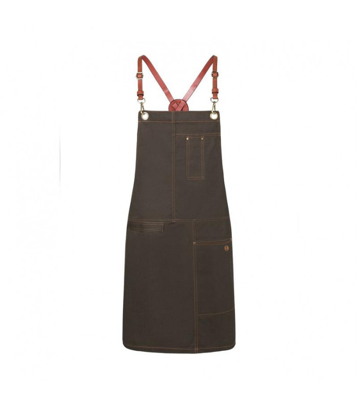 100% cotone. grembiule con tasche. cinturini in pelle sintetica, removibili e regolabili in lunghezza. cinturino in tessuto a destra per attaccare una fondina o un asciugamano da cucina. lavabile fino a 60â° c.