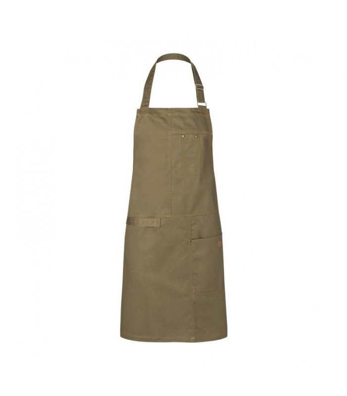 100% cotone. grembiule con tasche, bretelle regolabili, cinturino in tessuto sulla destra per attaccare una fondina o un asciugamano da cucina, lavabile fino a 60â° c.