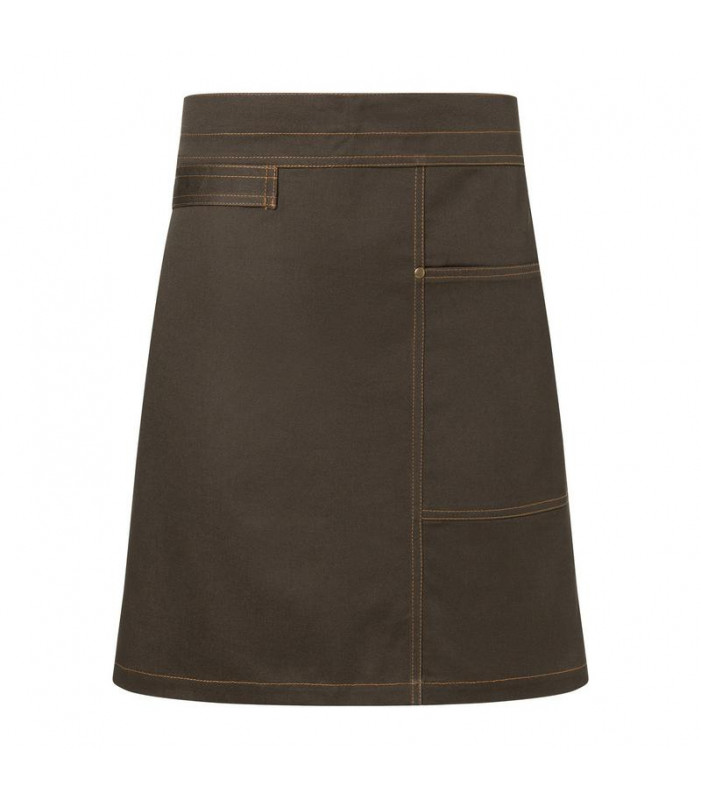 100% cotone. grembiule con tasche, cinturino in vita, cinturino in tessuto a destra per attaccare una fondina o un asciugamano da cucina. lavabile fino a 60â° c.