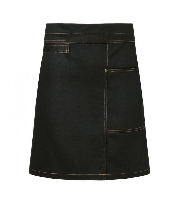 100% cotone. grembiule con tasche, cinturino in vita, cinturino in tessuto a destra per attaccare una fondina o un asciugamano da cucina. lavabile fino a 60â° c.