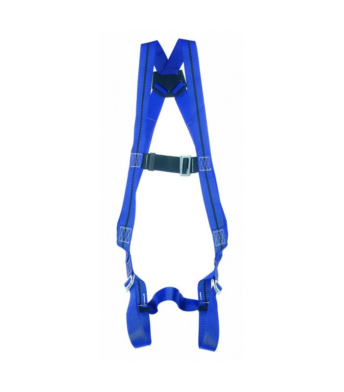 Imbracatura a 1 punto di ancoraggio dorsale, in tessuto poliestere di lunga durata, anello a d dorsale in acciaio galvanizzato completamente scorrevole per un maggior confort, nastro sub-pelvico per ulteriore confort e sicurezza, fibbie accoppiate su petto e gambe, nastro pettorale da 45 mm in poliammide con fibbia metallica ad apertura rapida. peso 500 g.