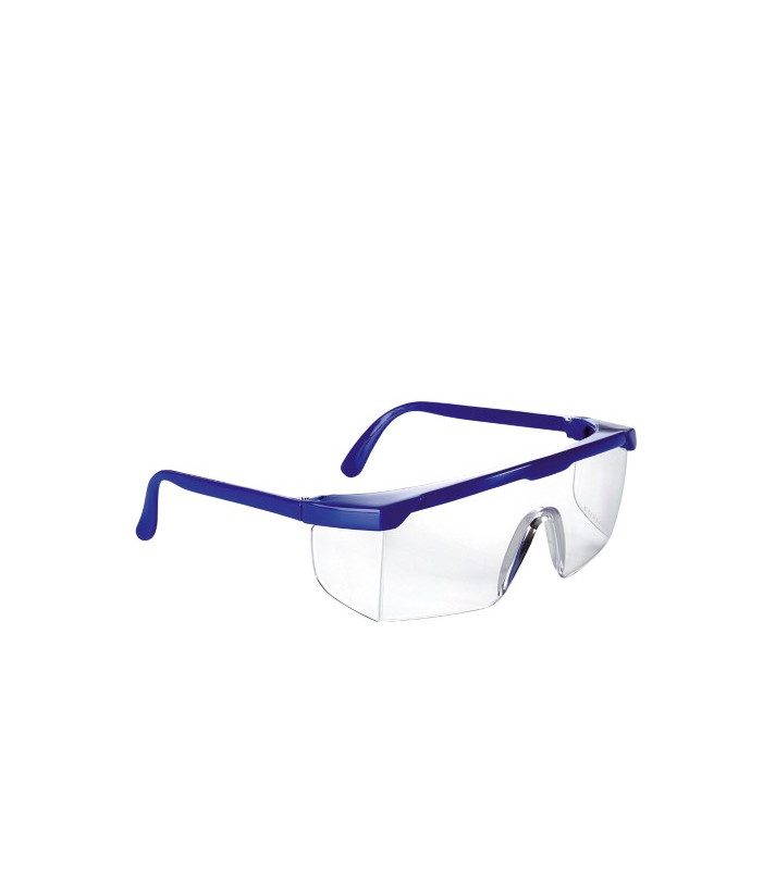 Monolente in policarbonato antigraffio, regolazione delle aste in lunghezza e inclinazione, protezioni laterali incorporate, montatura realizzata in materiale anallergico, peso 30 grammi.