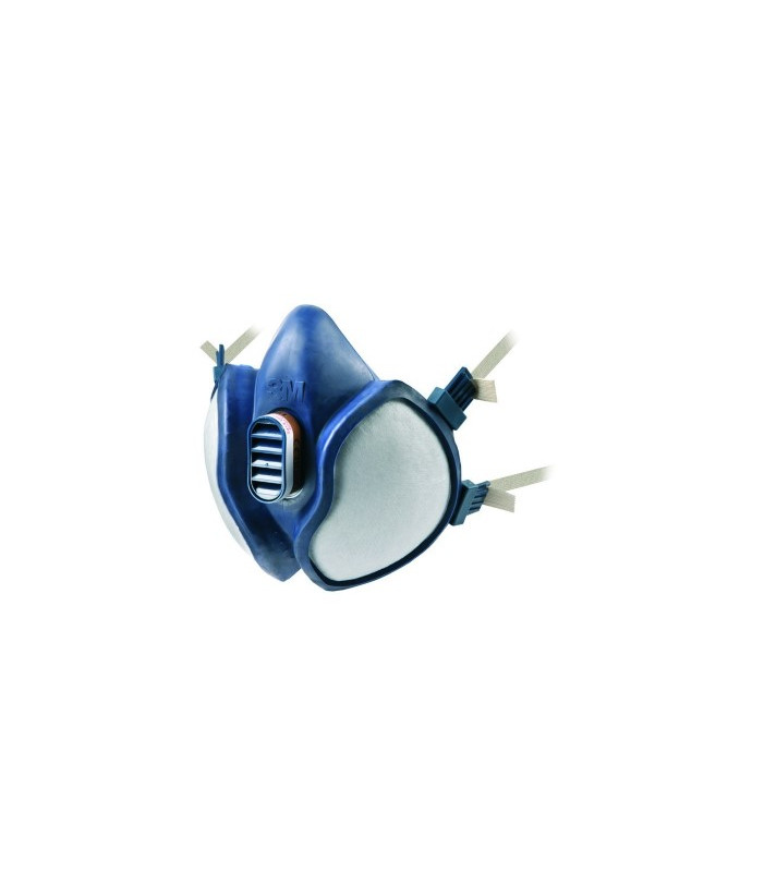 Facciale filtrante, struttura monoblocco senza manutenzione e ricambi, con morbido facciale in elastomero termoplastico, 2 elastici regolabili in quattro punti, 2 grandi filtri incorporati a carbone attivo ricoperti di filtro antipolvere in polipropilene a bassa resistenza respiratoria, valvola di esalalzione in gomma siliconica e valvola di inalazione in polisoprene, protegge da vapori organici fino a 10 volte il tlv o 1000 ppm, polveri e nebbie a base acquosa con livello massimo di utilizzo fino a 10 volte il tlv